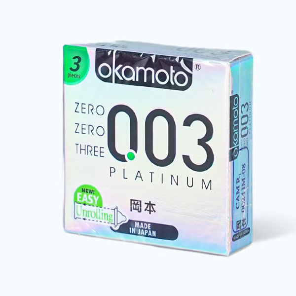 Okamoto zero zero three 0.03 Platinum mang đến trải nghiệm hoàn toàn mới mẻ. Với thiết kế mỏng, trơn và trong suốt, bao mang lại cảm giác như không sử dụng, giúp cả hai tận hưởng trọn vẹn từng khoảnh khắc. Đây là dòng sản phẩm được nhập khẩu chính hãng từ Nhật Bản và rất được ưa chuộng bởi giới trẻ.